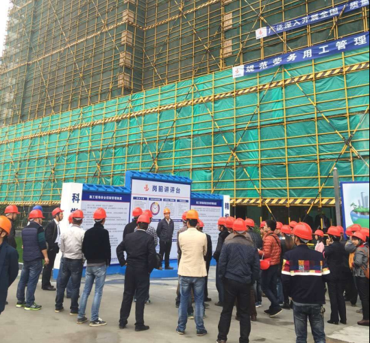 為積極貫徹落實(shí)住建部工程質(zhì)量治理兩年行動方案,進(jìn)一步深化2015年“質(zhì)量月”活動,做好建設(shè)工程質(zhì)量安全管理工作,總結(jié)和推廣優(yōu)質(zhì)項目的標(biāo)準(zhǔn)化效果和經(jīng)驗(yàn),不斷提高工程質(zhì)量水平。11月21日,集團(tuán)公司在紫金玉瀾二期項目部組織召開工程質(zhì)量管理現(xiàn)場觀摩交流會,分公司負(fù)責(zé)人、各在建工程項目負(fù)責(zé)人及技術(shù)負(fù)責(zé)人等兩百余人參加了此次現(xiàn)場觀摩會。