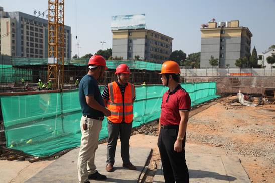 圖為集團(tuán)總裁陳永甘(右1)到北大科技園項(xiàng)目部檢查指導(dǎo)“創(chuàng)文”工作